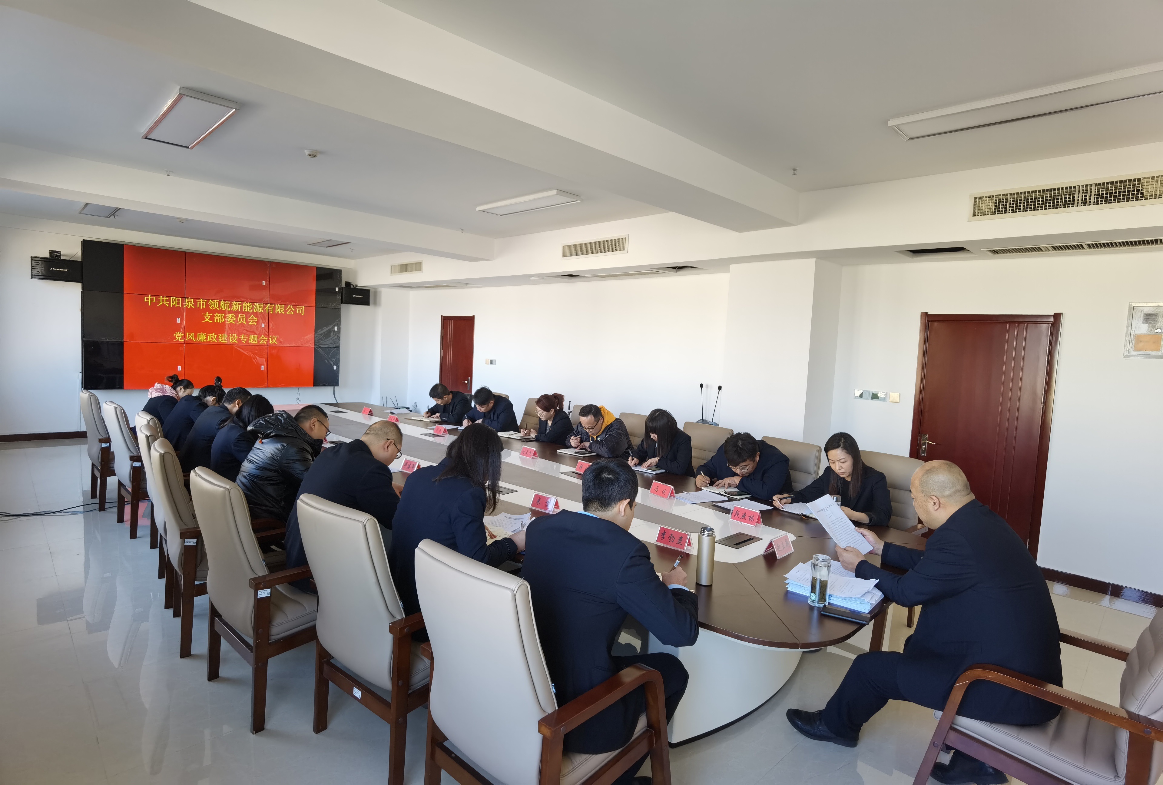 元月十三日,陽泉市領航新能源有限公司黨支部召開2022年黨風廉政建設工作會議,總結2021年全年黨風廉政建設和反腐敗工作,分析形勢和問題,部署2022年全面從嚴治黨工作任務。黨支部書記、董事長趙立新主持會議并講話,總經(jīng)理李勃燾,工會主席段燕林,副總經(jīng)理米苗、馮優(yōu),各部門負責人參加會議。